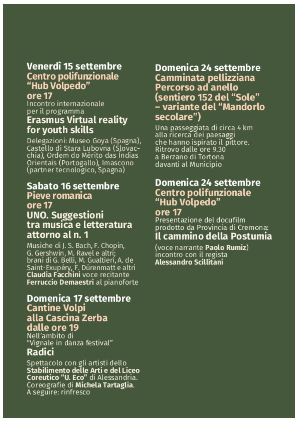 Dettagli nelle locandine allegate