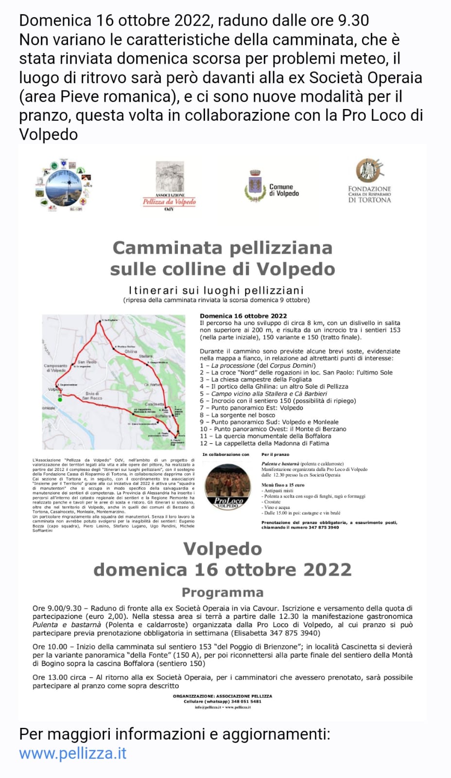 Al termine, per chi avesse prenotato, polenta presso la ex Società operaia.