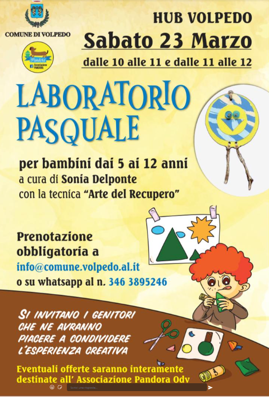 Prenotazione obbligatoria a info@comune.volpedo.al.it
