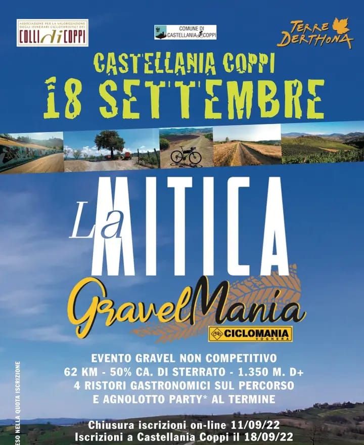 La manifestazione ciclistica Mitica gravel mania, dedicata alle biciclette gravel adatte a ogni tipo di fondo stradale, transita da piazza Quarto Stato a Volpedo dopo essere partita da Castellania Coppi. Il percorso preciso è stato comunicato agli iscritti solo pochi giorni prima dell'evento.