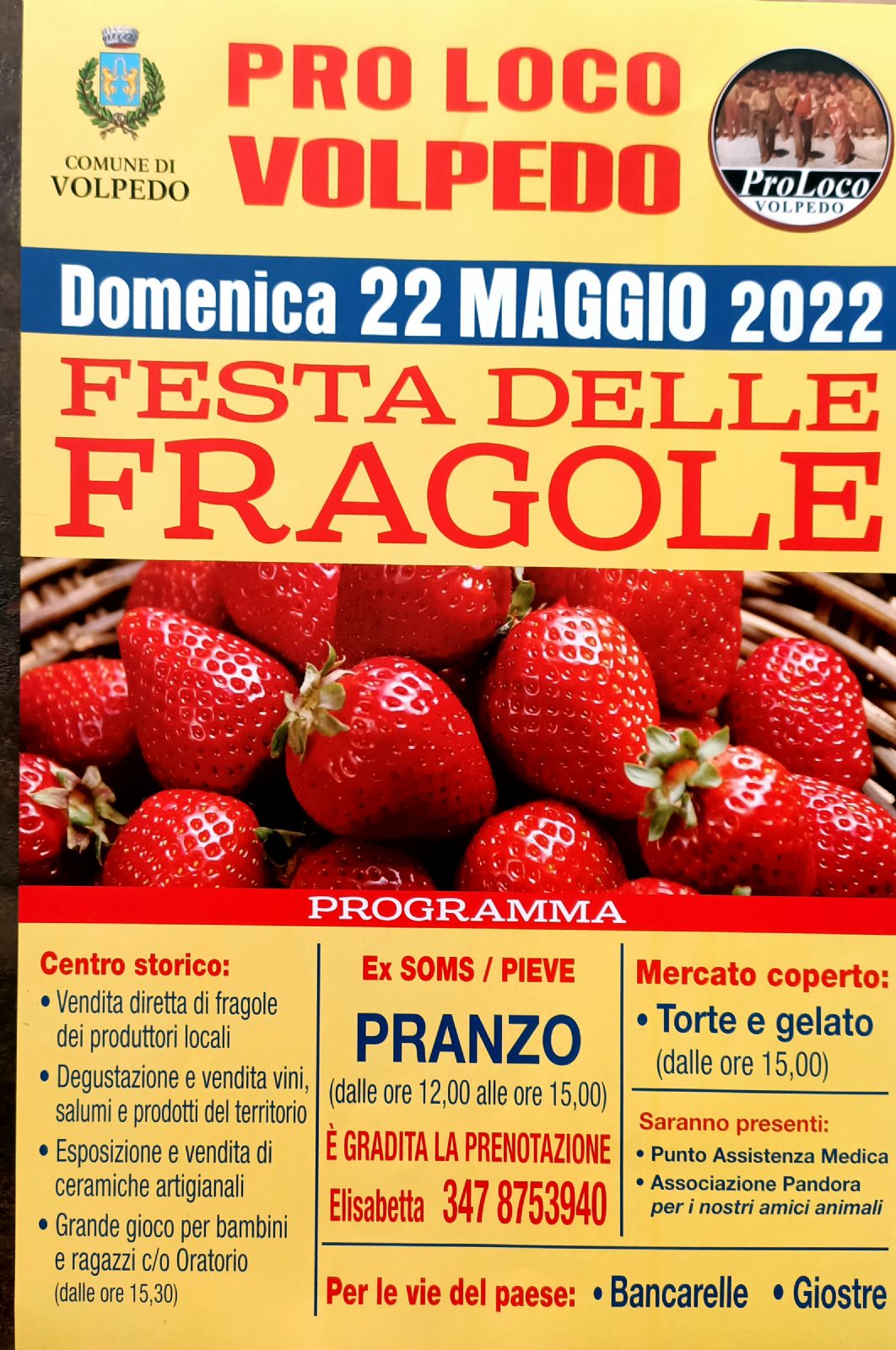 Ritorna a Volpedo la rinomata Sagra delle fragole. La novità di quest'anno è che la manifestazione è concentrata nel centro storico del paese. I produttori locali di fragole, vini, salumi e formaggi esporranno e venderanno, nelle vie e piazzette adiacenti alla zona Torraglio, i loro genuini prodotti. Lungo le vie del paese saranno allestite le tradizionali bancarelle e in piazza Perino ci saranno giostre e altre attrazioni.