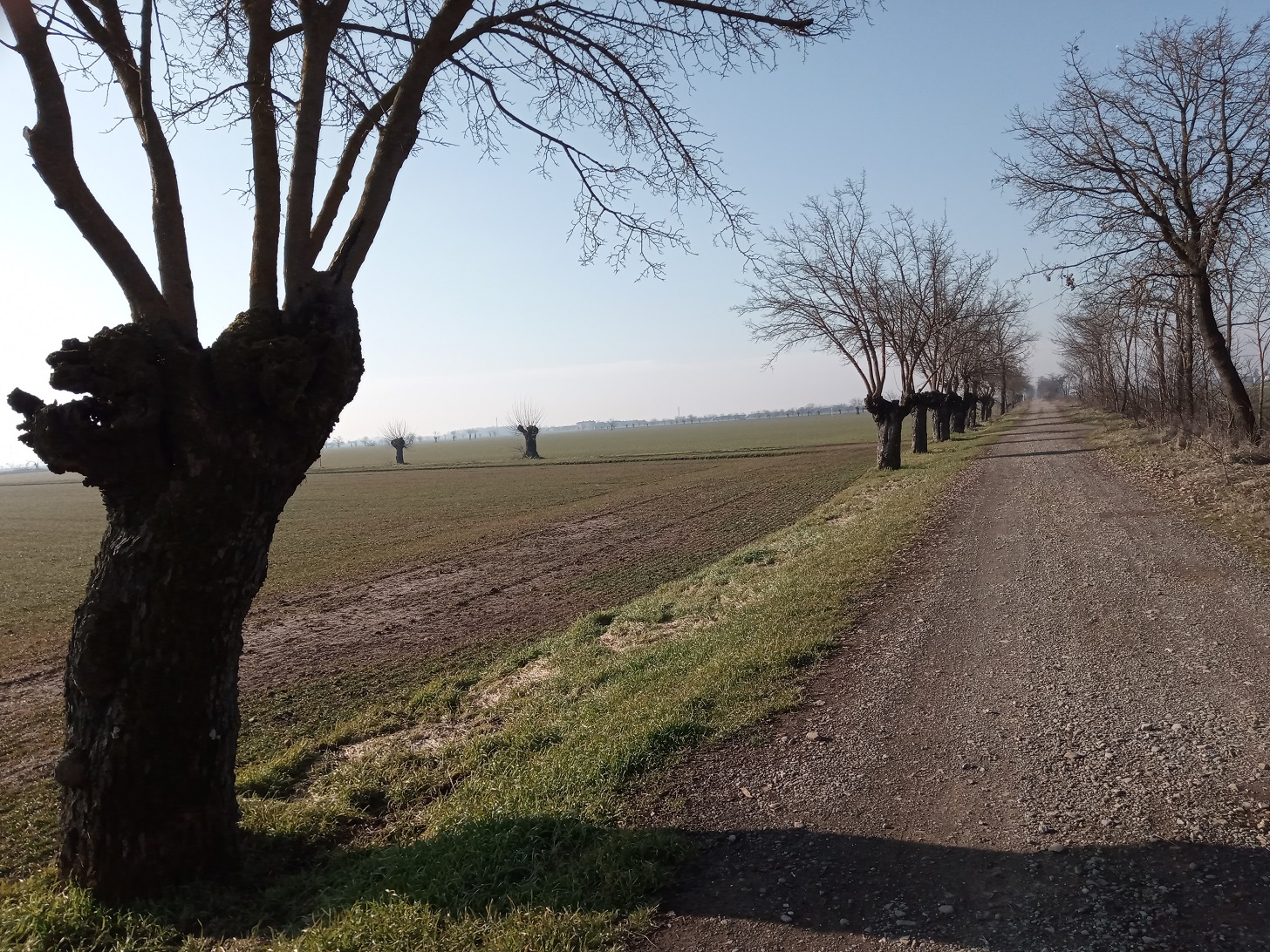 Conviene però imboccare la sterrata che si stacca in precedenza sulla destra presso una chiusa, per portarsi sulla strada provinciale. Poco più avanti, al bivio per Frugarolo, sorge la cascina Torre, con strutture fortificate che probabilmente corrispondono all'antichissimo insediamento della Curtis Urba, che controllava le ampie selve da qui all'Appennino. Costeggiando la cascina si imbocca una strada campestre che sbocca tra la frazione del Mandrino e la cascina Camilla. Proseguendo a sinistra su asfalto tra pioppi e gelsi si giunge alla cascina Belvedere (sfruttando a tratti la parallela sterrata), a un sottopasso della ferrovia e all'incrocio del Molinetto. Qui si prende a sinistra la strada Stortigliona e più avanti si può passare sul parallelo argine del Bòrmida, fino a sboccare alla stazione di servizio presso il ponte della SS 10 (fare molta attenzione al traffico!) che conduce in Alessandria. Sul lato opposto arriva da nord il Cammino di San Michele.
