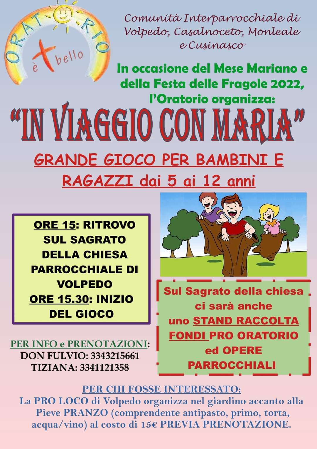 Alle 15:30 sul sagrato della chiesa parrocchiale "In viaggio con Maria": grande gioco per bambini e ragazzi.