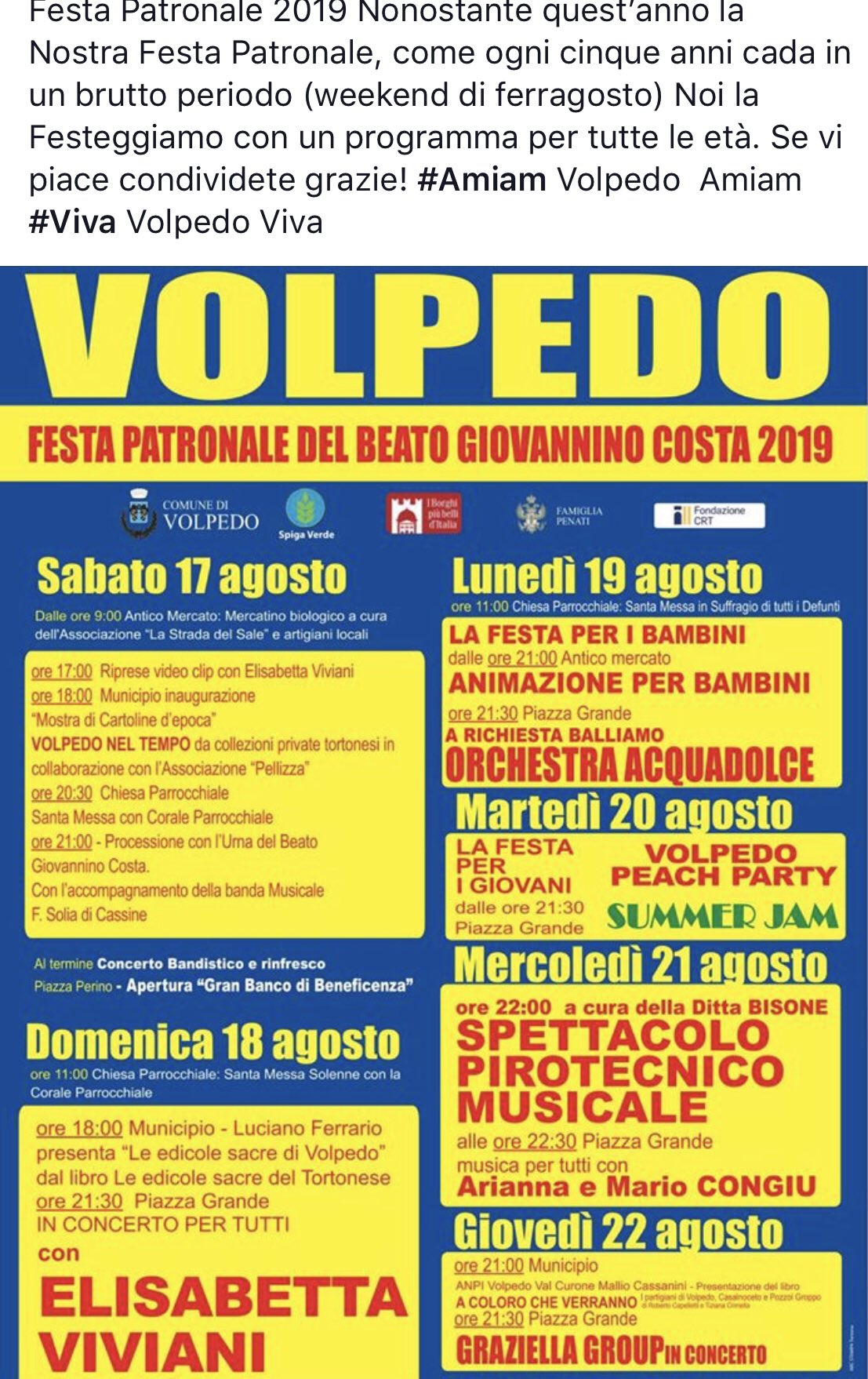 Indirizzo: ProLoco Volpedo, Piazza Libertà, 15059 Volpedo AL
