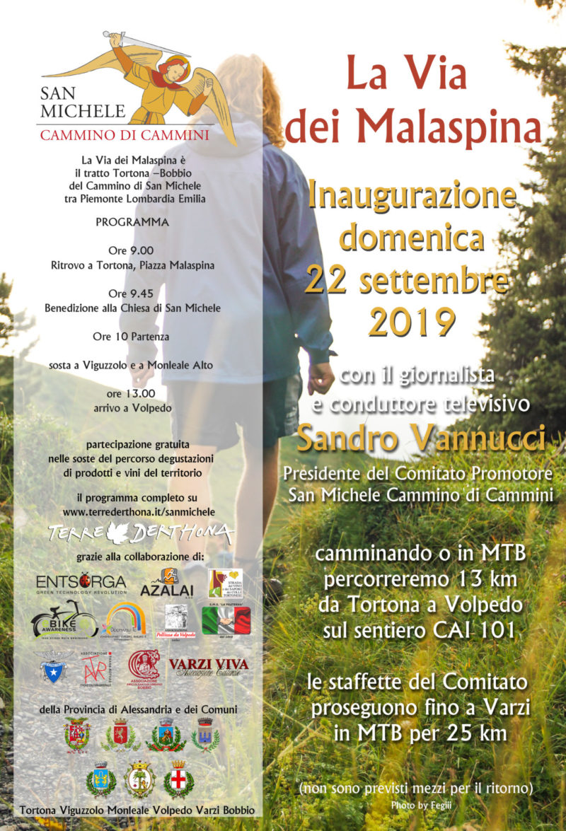 Domenica 29 settembre viene inaugurato il tratto Tortona - Volpedo - Varzi - Bobbio con la benedizione presso la chiesa tortonese di San Michele (ore 9.30), il percorso a piedi via Viguzzolo - Volpeglino - Monleale insieme al promotore Sandro Vannucci e l'arrivo alla pieve di Volpedo dove si trova l'affresco che dà il logo all'intero progetto.
