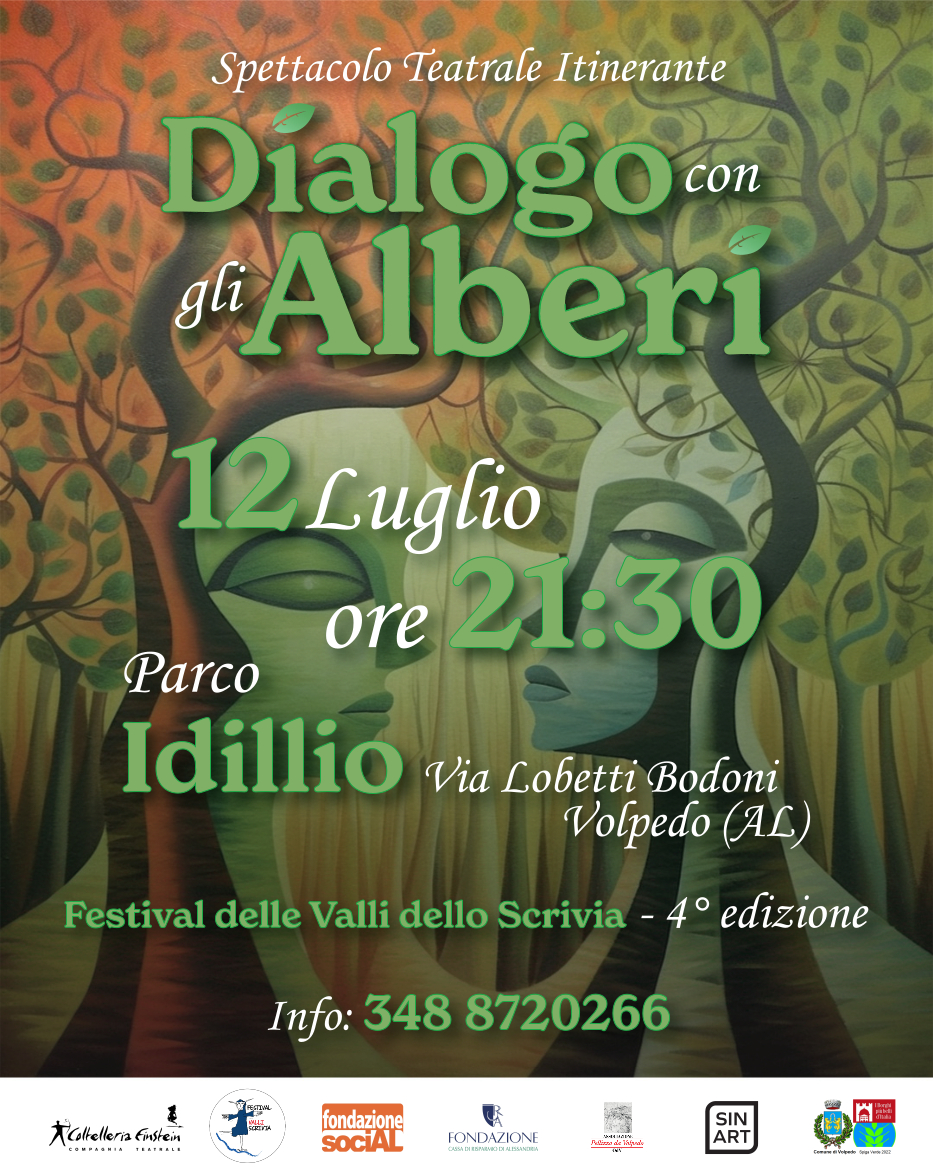 uno spettacolo itinerante di Fabio Martinello con le attrici e gli attori di Sin Art all’interno di spazi non canonici, per ascoltare ciò che gli alberi e le piante hanno da dirci. Lo spettacolo vede il pubblico protagonista, lo spettatore è accompagnato da figure magiche e misteriose fra boschi e radure per ascoltare il racconto della natura. Un percorso teatrale che attraversa luoghi