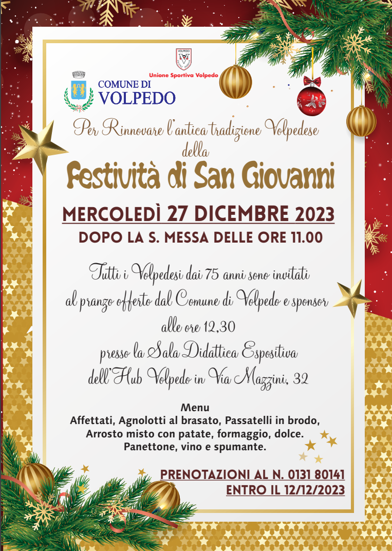 Prenotazioni al numero 0131 80141 entro il 12 dicembre.